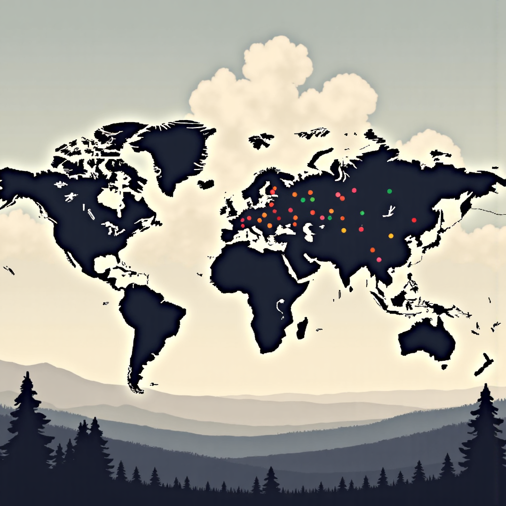 世界地圖環繞貨幣符號的像素藝術圖像,象徵匯率交換與全球金融連結