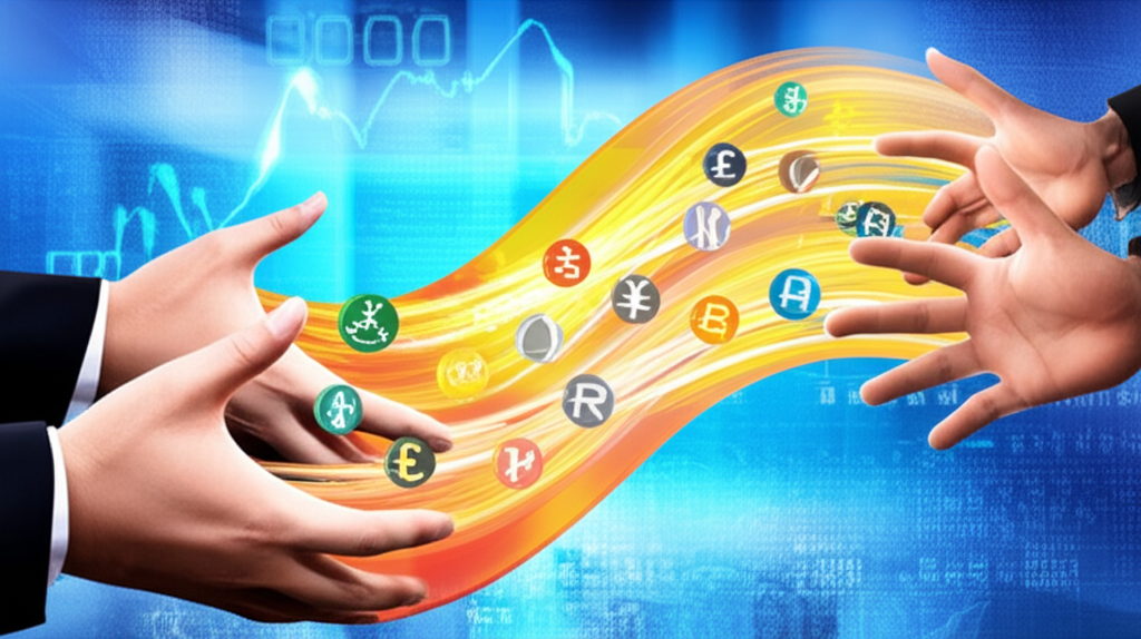 全球貨幣在買賣雙方之間順暢流動的插圖,代表高流動性的金融市場